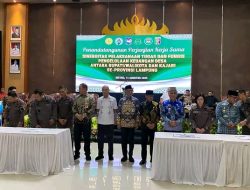Lampung-Kota Metro(harimaumetrocity.com)||Bupati dan Wali Kota se-Provinsi Lampung resmi menandatangani perjanjian kerja sama dengan Kejaksaan Negeri se-Lampung, Kamis (14/08/2025), di Gedung Sessat Agung Bumi Sai Wawai Kota Metro.
